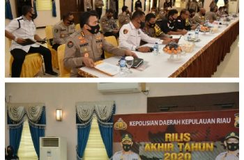Kapolda Kepri Irjen Pol Dr. Aris Budiman, M.Si., dalam Rilis Akhir Tahun 2020, Kapolda Kepri didampingi oleh Wakapolda Kepri, Irwasda Polda Kepri dan dihadiri oleh Para Pejabat Utama Polda Kepri, Ketua Ombudsman Provinsi Kepri, Kadis Kominfo Provinsi Kepri, Ketua KIP Kepri, Ketua KPID Kepri, Ketua PWI Kepri dan para pimpinan Redaksi media di Provinsi Kepri serta para awak media di Provinsi Kepri, pada Rabu (30/12/20) di Graha Lancang Kuning Polda Kepri.
