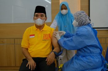 Setelah melakukan suntik vaksin COVID-19 yang pertama bersama dengan Bupati Muba Dr H Dodi Reza Alex Noerdin Lic Econ. Kali ini, Wakil Bupati Musi Banyuasin Beni Hernedi SIP menjalani suntik vaksin COVID-19 Sinovac tahap kedua. Tahap ke 2 penyuntikan vaksin COVID-19 ini dilakukan di ruang Medical Chek Up (MCU) Rumah Sakit Umum Daerah (RSUD) Sekayu, Senin (22/2/2021).