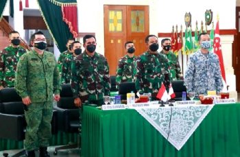Bandung – jurnalpolisi.id Latihan Bersama (Latma) Indonesia- Singapura “Safkar Indopura” ke- 33 tahun 2021 telah resmi ditutup Kepala Staf Angkatan Darat (Kasad). Dalam acara penutuan tersebut, diwakili Pangdam III/Siliwangi Mayjen TNI Agus Subiyanto, S.E., M.Si, dilaksanakan secara virtual di Ruang Puskodalopsdam III/Slw Jalan Aceh No.69 Kota Bandung, Jawa Barat, Kamis (18/11/2021). Hadir pada acara tersebut, Atase Pertahanan Singapura untuk Indonesia Kolonel Nicholas Lim, Atase Angkatan Darat Singapura untuk Indonesia Kolonel Gene Tan, para Asisten Kasdam III/Siliwangi, dan Kasbrigif 15/Kujang II. Dalam kesempatan tersebut, atas nama Kasad. Pangdam III/Slw Mayjen TNI Agus Subiyanto, diantaranya menyampaikan terimakasihnya kepada Komandan Divisi 3 AD Singapura dan Staf serta seluruh jajarannya, atas kerja sama yang baik dalam menyelenggarakan Latma yang telah berlangsung sejak 11 hingga18 November 2021 di Kranji Camp Singapura dinyatakan berhasil. Lanjutnya, Latihan Safkar Indopura merupakan wujud nyata dari komitmen negara Singapura dan Indonesia dalam rangka menjalin dan meningkatkan hubungan kerjasama antar Angkatan Darat. Juga, telah menerima materi Taktik dan Teknik Pertempuran Kota, Cultural Exchange Performance dan Keterampilan Bahasa Inggris, akan berkembang menjadi hubungan personal antar para prajurit. Selain menerima materi tersebut, 50 Prajurit Yonif 310/Kidang Kencana Brigif 15/Kujang II dapat mengetahui Kultur Budaya Singapura, sekaligus dapat mencoba dan menggunakan sarana dan teknologi yang dimiliki SAF seperti Lapangan Simulasi Menembak SAF, Lapangan Tembak Indoor SAF, dan Prasarana Latihan Purkota SAF, Senjata SAR 21, serta Teknologi Sensor yang digunakan dalam latihan taktik. ”Semoga kerja sama yang telah terbangun dengan solid, baik selama kegiatan Latma Safkar Indopura, maupun kerja-sama yang telah terjalin selama ini dengan baik, dapat kita lanjutkan dan kembangkan lagi di masa yang akan datang,” harapnya. Diakhir acara tersebut, Pangdam juga menyampaikan terimakasihnya kepada Danyon dan Prajurit Yonif 310/KK yang telah mengikuti Latma dengan penuh kesungguhan. Materi yang didapat dinilai baik dan bisa diterapkan, untuk dipedomani dan dilatihkan kepada Prajurit lainnya. (Pendam III/Siliwangi).