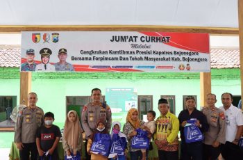 Kegiatan Jum’at Curhat dilanjutkan pemberian santunan kepada anak yatim piatu oleh Kapolres Bojonegoro dan kemudian sesi tanya jawab oleh peserta/tamu undangan.