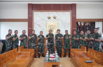 Panglima Komando Daerah Militer Iskandar Muda (Pangdam IM) Mayjen TNI Mohamad Hasan menerima kunjungan Tim Puldata Staf Ahli Panglima TNI Mayjen TNI Prince Meyer Putong,SH.MIP di Balee Sanggamara Makodam IM. Selasa (28/02/2023)