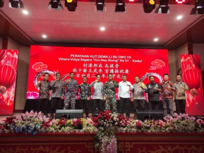 Letkol Arh Irvan Nurdin, S.E., M.M, Dandim 0303/Bengkalis yang diwakili oleh Danramil 04/Rupat, Lettu Inf Budiamsyah Saragih, bersama Ketua Persit KCK Ranting V Koramil 04/Rupat, turut menghadiri pembukaan acara perayaan Ulang Tahun Dewa Li Bu Ong Ya yang ke-51 di Vihara Vidya Sagara, Kelenteng Cin Hou Kiong, Desa Kadur, Kecamatan Rupat Utara, pada Jumat (20/01/2025).