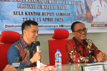 Kabupaten Samosir dipilih Badan Pengembangan Sumber Daya Manusia Sumatera Utara sebagai lokus pelaksanaan studi lapangan pelatihan kepemimpinan Administrator angkatan I dan II 2025. Wakil Bupati Samosir Ariston Tua Sidauruk menyambut baik kehadiran Plh. Kepala BPSDM Sumut Tomy harahap beserta rombonga di Aula Kantor Bupati Samosir, 24/04.