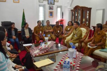Bupati Humbahas Dr Oloan P Nababan SH MH didampingi dinas terkait terima kunjungan Tim Badan Pengawasan Keuangan dan Pembangunan (BPKP) Perwakilan Provinsi Sumatera Utara bertempat di Kantor Bupati Humbahas Bukit Inspirasi Doloksanggul,Senin,14/4/2025.