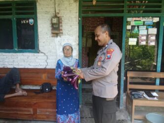 Polsek Wilangan melalui Kanit Binmas Aiptu Bambang Dwi S. memanen tanaman sayuran berupa terong di halaman kantor Polsek dan membagikannya kepada warga sekitar, salah satunya kepada Ibu Tutik yang tinggal di belakang Mapolsek, Minggu(13/4/2025).