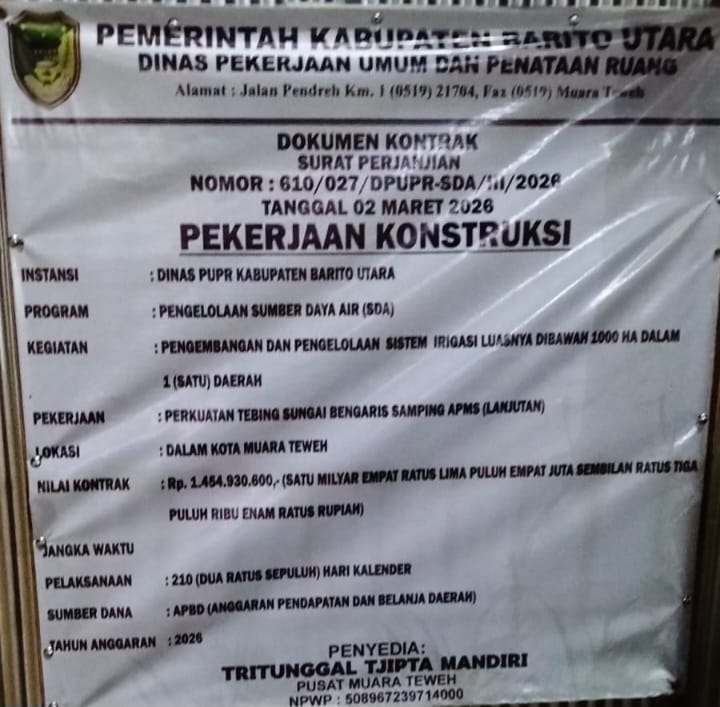 Video kejadian tersebut kemudian disampaikan kepada Kepala Bidang Sumber Daya Air PUPR Barito Utara, Subi. Melalui pesan WhatsApp, Subi menyatakan akan meneruskan informasi tersebut kepada pejabat pelaksana teknis kegiatan (PPTK).
