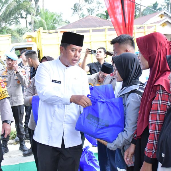 Sekretaris Daerah Kabupaten Agam, Mhd Lutfi,hadiri penyerahan santunan lebaran dari Kapolda Sumatera Barat kepada masyarakat korban terdampak bencana di Kecamatan Palembayan, Jumat, (13/3/2026).