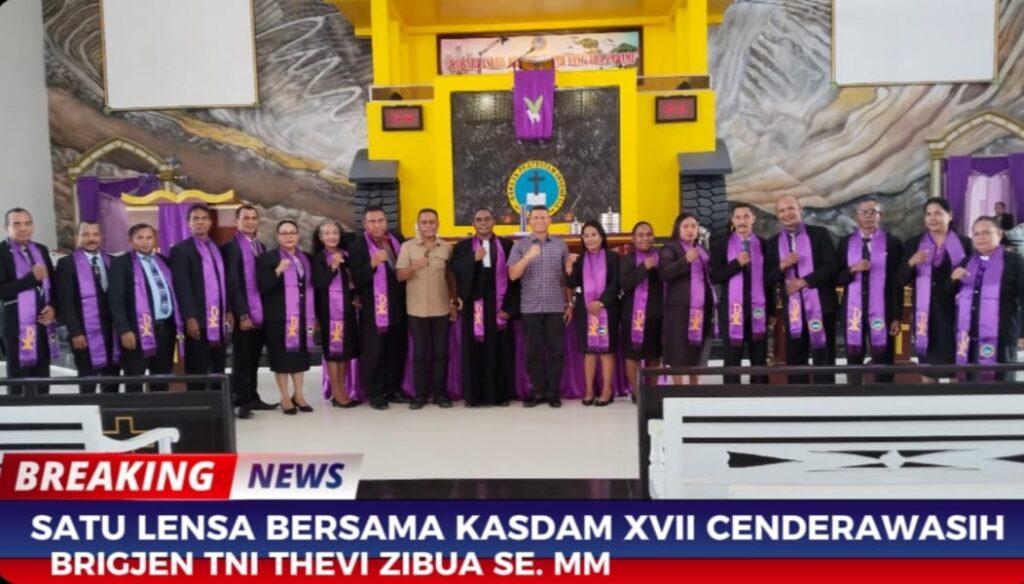 “Saya bersyukur, tadi saya sempat mendengar dari Bapak Ibu Majelis yang menyampaikan dalam pesan pesan, terkait dengan bagaimana Jemaat terus menjaga Keamanan selama kita melakukan aktifitas selama di Papua,” lanjut Kasdam XVII Cenderawasih BRIGJEN TNI THEVI ZIBUAN SE MM, dalam sambutannya dihadapan seluruh Jemaat Torsina GPI Papua, Klasis Mimika Kabupaten Mimika.