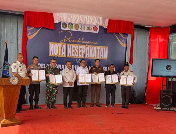 Penandatanganan Nota Kesepakatan Tentang Pelaksanaan Kerja Sosial di Wilayah hukum Kabupaten Sarolangun bersama Direktur Jendral Pemasyrakatan (Dirjenpas) Jambi dengan Pemkab Sarolangun di Aula Lapas kelas IIB Sarolangun.