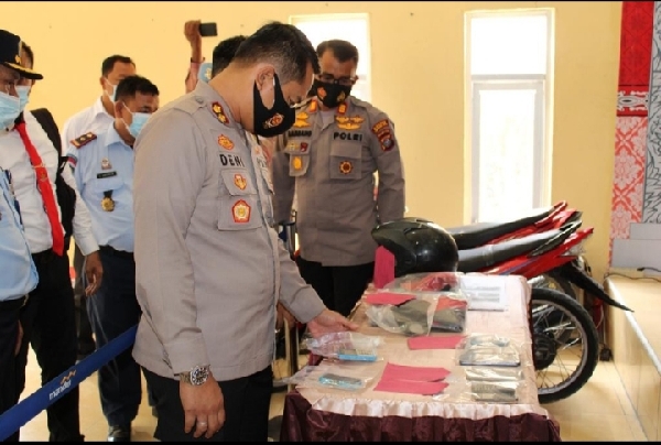 Labuhanbatu – jurnalpolisi.id Kapolres Labuhanbatu AKBP Deni Kurniawan, S.I.K., M.H. pimpin konferensi Pers pengungkapan kasus pembakaran Rumah Dinas (Rumdis) Kepala Lembaga Pemasyarakatan (Kalapas) Kelas III Kota Pinang, di ruang lobi Polsek Kota Pinang, Senin (02/08/2021). Dalam paparannya, Kapolres yang didampingi Kapolsek Kota Pinang AKP Bambang G. Hutabarat, Kabid pembinaan bimbingan teknologi informasi kanwil Kumham sumut M. Tavip,…