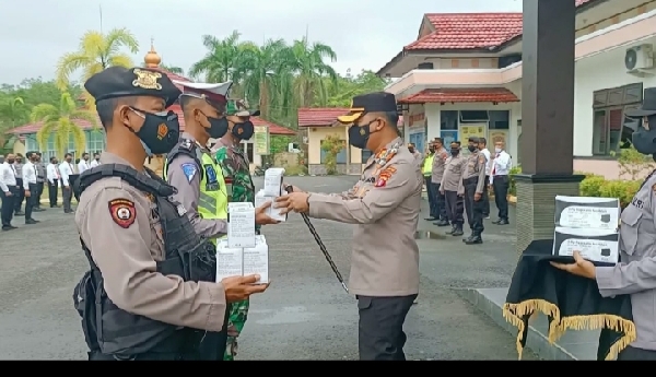 Polres Pulpis Gelar Apel Pelepasan Petugas Pembagian Masker
