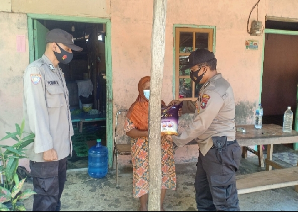 Polsek Sei Beduk Bagikan Sembako Kepada Masyarakat Terdampak PPKM