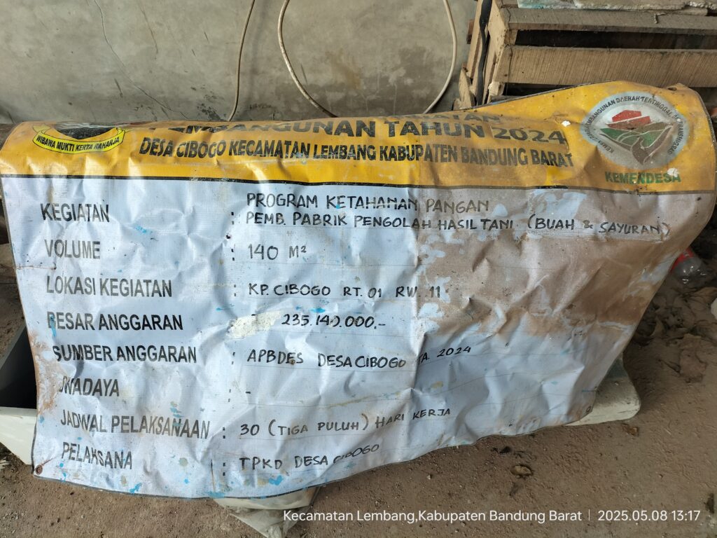 Ditambah lagi, pembangunan pabrik pengolah hasil tani yang menjadi program ketahanan pangan Desa Cibogo tahun 2024 yang menghabiskan anggaran hingga ratusan juta rupiah. Menurut informasi yang dihimpun, bangunan tersebut diduga kuat tak pernah digunakan, alias mangkrak.