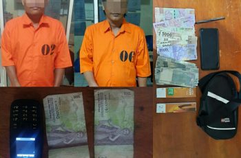 Dari tersangka VL didapatkan barang bukti 1 Unit Hp Nokia berisikan sms pemesanan nomor togel dan uang tunai sebesar Rp 10 ribu, sementara dari tersangka GM didapatkan barang bukti 1 unit Hp android merk Hotwav berisi sms pemesanan nomor togel, 2 buah buku rekap catatan nomor togel, sebuah tas sandang merk Aiger dan sebuah pena warna putih hitam.