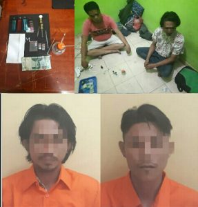 Petugas kemudian melakukan penggeledahan terhadap kedua orang tersebut dan menemukan barang bukti narkotika jenis shabu sebanyak 1 paket, selain itu ditemukan beberapa peralatan pemakaian shabu yang baru digunakan berada didepan pelaku, selanjutnya kedua pelaku dan barang bukti dibawa ke Polsek Tapung untuk menjalani pemeriksaan lebih lanjut.
