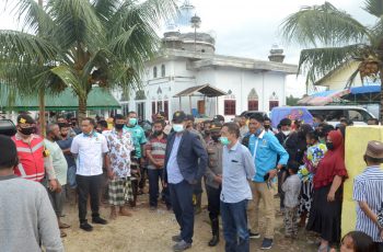 Bupati Aceh Timur, H. Hasballah HM.Thaib SH, bersama unsur forkpimcam mengarungi banjir menyalurkan bantuan semako terhadap warga yang mengungsi disejumlah titik dalam Kabupaten Aceh Timur, Minggu (6/12/2020).