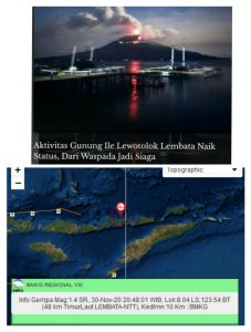 Sementara pantauan wartawan jurnal Polisi News pada pihak yang berwenang dan Pos Pemantau Gempa Vulkanik Gunung Ile Lewotolok di prediksi akan terjadi Erupsi yang lebih dahsyat dan sangat membahayakan seluruh warga Lembata pada umumnya khususnya pada dawragw tenggara pulau Lembata di antaranya Desa Jontona , Desa Lamawolo, Tokojaeng, Desa Aulesa dan Desa Waowala,,,warga Desa desa Tersebut dapat dikosongkan / di evakuasi ke Poskoh Utama Kota Lewoleba.