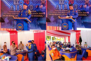 “Selamat datang bapak Kapolda Riau beserta rombongan dan segenap undangan atas kesediaannya meluangkan waktu menghadiri acara syukuran HUT Kepolisian Perairan Dan Udara, merupakan suatu kebanggaan dan kehormatan bagi kami keluarga besar Ditpolairud Polda Riau. Dalam rangka hut ke-70 ini, Ditpolairud Polda Riau telah melaksanakan kegiatan antara lain bhakti sosial, anjangsana, donor darah, bersih pantai dan bhakti kesehatan yang mengusung tema “dengan semangat promoter polairud siap mengamankan pilkada 2020 dalam rangka mendukung pembangunan nasional” semoga dengan tema tersebut jajaran polairud polda riau dapat dan mampu mewujudkannya. dan kami menyadari cita – cita dan harapan tersebut perlu dukungan dan partisipasi dari semua pihak”, papar Kombes Badarudin.