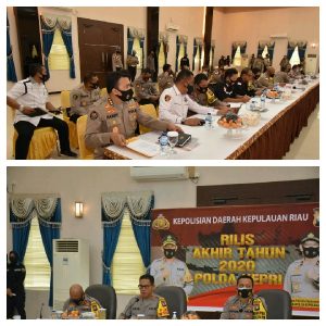 Kapolda Kepri Irjen Pol Dr. Aris Budiman, M.Si., dalam Rilis Akhir Tahun 2020, Kapolda Kepri didampingi oleh Wakapolda Kepri, Irwasda Polda Kepri dan dihadiri oleh Para Pejabat Utama Polda Kepri, Ketua Ombudsman Provinsi Kepri, Kadis Kominfo Provinsi Kepri, Ketua KIP Kepri, Ketua KPID Kepri, Ketua PWI Kepri dan para pimpinan Redaksi media di Provinsi Kepri serta para awak media di Provinsi Kepri, pada Rabu (30/12/20) di Graha Lancang Kuning Polda Kepri.