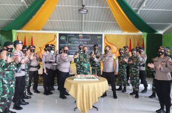 Kapolresta Barelang AKBP Yos Guntur, S.IK Beserta Dansat Brimob Polda Kepri, Kombes Pol M. Rendra Salipu, S.I.K. MSI, dan Jajaran mendatangi Batalyon Infanteri Raider Khusus 136/Tuah Sakti Tembesi, Kota Batam, untuk memberikan Kejutan Kue Syukuran Peringatan Hut Ke-16 Yonif Raider Khusus 136/Tuah Sakti. pada Senin (07/12/2020) sekira pukul 07.00 Wib.