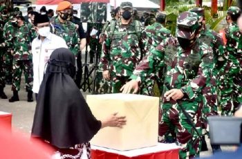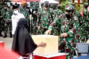 Panglima TNI Membagikan 750 Bingkisan Untuk Masyarakat yang terdampak Pandemi COVID-19 dan 4 Unit Kunci Rumah.