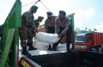 Polres Klaten bersama Kodim 0723/Klaten menyalurkan 11 ton beras bantuan untuk masyarakat terdampak covid-19, Rabu (02/12/2020).