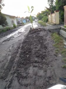 Sementara di musim kemarau debu debu truk yang Melintas ber terbangan mengotori rumah warga sehingga kami bersepakat memblokir jalan dengan menanam pohon pisang di tengah jalan cetus suhar dengan Nada kesal(HS/02)