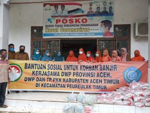 Bantuan beruba sembako tersbeut diserahkan TP PKK Aceh Timur dan DWP setempat melalui pihak kecamatan setempat. Tetapi sebagian diserahkan ke rumah masyarakat yang sempat tergenang saat bencana banjir melanda 2/3 wilayah Aceh Timur, pekan lalu.