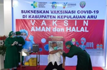 Bupati Kepulauan Aru dr Johan Gonga menjadi orang pertama di Kabupaten Kepulauan Aru, yang menerima suntikan Vaksin Covid-19 perdana pada hari Rabu, (27/1/2021) dengan menerapkan protokol kesehatan. Penyuntikan perdana yang dilaksanakan dilantai 2 Rumah Sakit Umum Daerah (RSUD) Cenderawasi Dobo ini, sekaligus pencanangan Vaksinasi di Kabupaten Kepulauan Aru.