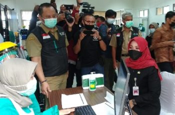 Untuk mencegah penularan covid-19 di Kabupaten Klaten, Dinas Kesehatan (Dinkes) setempat mulai melakukan vaksinasi covid-19 dengan vaksin Sinovac kepada Bupati Klaten Sri Mulyani dan unsur Forum Komunikasi Pimpinan Daerah (Forkopimda) Kabupaten Klaten yang diadakan di RSUD Bagas Waras Klaten, Senin(25/01/2021) pagi.