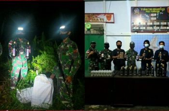 “Karena curiga, anggota melakukan penyisiran di sekitar jalan tersebut kemudian ditemukan barang mencurigakan berupa karung. Setelah diperiksa ternyata karung tersebut berisi minuman keras sebanyak 84 botol dengan rincian minuman merk Brandy First sebanyak 36 botol dan merk Tsingtao Beer sebanyak 48 botol,” ungkap Dansatgas.
