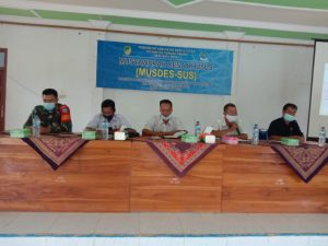 Pelaksanaan Musdesus (27/1/2021, Dengan dihadiri oleh unsur Tripika, Sekcam Gunung Timang,Babinsa,Pendamping desa, Pemdes, BPD, LKD (LKMD, RT/RW, KPMD), dan Tokoh masyarakat, Musdesus ini mebahas penggunaan dana untuk penetapan warga yang mendapat BLT-DD di tahun 2021. dan tetap mematuhi protokol kesehatan dengan memakai masker serta cuci tangan dan jaga jarak.