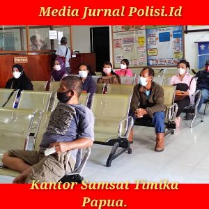 Kedatangan masyarakat di Kantor Samsat Timika Kabupaten Mimika, guna membayar pajak kendaraan bermotor baik roda dua maupun roda empat yang dilaksanakan pada hari Senin, (25/1/2021). Dalam pelaksanaan pembayaran pajak kendaraan tersebut, terlihat dengan jelas pada gambar yang diatas sangat mengharumkan nama baik pemerintah Kabupaten Mimika, karena selalu mentaati serta menjalankan protokol kesehatan pandemi Covid-19.