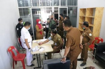 Sebelum menjalani vaksinasi Covid-19 yang akan dilaksanakan pada 10 Februari mendatang, sebanyak 20 pejabat di Kabupaten Aceh Timur menggelar rapat koordiansi dan melakukan Skrining (pemeriksaan kesehatan), yang berlangsung di Gedung Dekranasda setempat, Senin (8/2/2021).