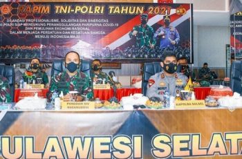 Pangdam XIVHasanuddin Mayjen TNI Andi Sumangerukka, S.E., mengikuti Rapat Pimpinan (Rapim) TNI-Polri tahun 2021 secara virtual bertempat di Rupatama Mapolda Sulsel Jl. Perintis Kemerdekaan Km. 16 Makassar, Senin (15/02).