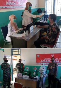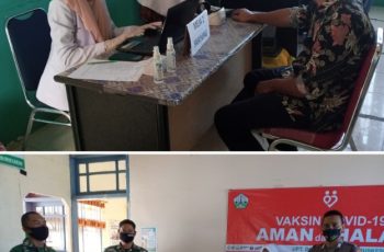 Proses vaksinasi di Puskesmas Peulimbang Kecamatan Peulimbang Kabupaten Bireun ikut dingawasi aparat Polri dan TNI. Mematuhi protokol kesehatan wajib pakai masker dan jaga jarak .