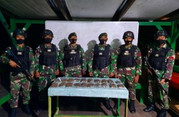 “Berdasarkan laporan yang saya terima dari Kapten Inf Hervin Rahadian Jannat, bahwa saat melakukan penyisiran di luar area pemeriksaan kendaraan roda dua maupun roda empat, salah satu anggota yang bernama Kopda Chundori menemukan dua puluh paket Ganja tersebut ,” ungkap Dansatgas.