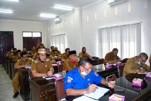 Rakor yang berlangsung sehari tersebut mematuhi protokol kesehatan. Para peserta diwajibkan memakai masker dan menjaga jarak. (Zainal Abidin)