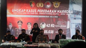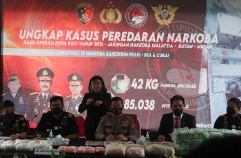 JAKARTA, jurnalpolisi.id Direktorat Tindak Pidana Narkoba Bareskrim Polri menggagalkan peredaran narkoba sabu seberat 42,337 Kilogram (Kg) dan 85.038 butir ekstasi. Itu merupakan hasil operasi gabungan bersama Bea Cukai. “Kami sampaikan sejak tanggal Februaei sampai hari ini Dit tipid narkoba Bareskrim bersama Ditjen Bea Cukai khususnya Sub Firektorat Narkotika melakukan operasi gabungan diberi sandi Dewa Ruci 2021,” kata Dir Tipid Narkoba Bareskrim Polri Brigjen Krisno Halomoan Siregar dalam jumpa pers di Gedung Bareskrim Polri, Jakarta Selatan, Selasa (30/3/2021). Krisno menjelaskan, pengungkapan pertama Pelabuhan Gosong Deli, Belawan, Sumatera Utara. Dalam operasi ini, petugas menangkap dua tersangka yakni RW (41) dan MY (38). “Barang bukti antaranya sabu sebanyak 42.337 Gram dan Ekstasi 40.038 butir dan H5 10 butir,” ujar Krisno. Operasi itu ketika petugas gabungan sedang melakukan patroli di jalur laut Gosong Deli. Saat bertugas, aparat melihat kapal yang mencurigakan dan melakukan pengejaran hingga akhirnya dapat dihentikan. “Membawa muata empat paket kecil dan dua paket besar berisi pil warna merah muda dan 40 paket kemasan teh China yang diduga narkotika jenis Sabu,” ucap Krisno. Atas perbuatannya, tersangka dijerat Pasal 62, Pas 60 ayar (4), Pasal 60 ayat (5) UU Nomor 5 Tahun 1997 Tentang Psikotropika, Pasal 114 AYAT (2) Jo Pasal 132 ayat (1) Subsidaur Pasal 112 (2) Jo Pasal 132 ayar (1) UU RI Nomor 35 Tahun 2009 Tentang Narkotika. Selanjutnya penangkapan kedua dilakukan di Pantai Tanjung Piayu Laut, Kota Batam, Kepri. Dalam operasi itu petugas menangkap tiga orang tersangka yaitu, MA (25), MM (25), dan FK (27). “Barang bukti yang diamankan adalah 45.000 butir ekstasi,” tutur Krisno. Saat dilakukan interogasi, tersangka MA mengaku diperintah oleh EM warga Malaysia yang akan diberikan kepada tersangka TN yang merupakan seseorang yang masuk dalam Daftar Pencarian Orang (DPO). Akibat perbuatannya itu, mereka disangka melanggar Pasal 114 ayat (2) Jo Pasal 132 ayat (1) Subsidair Pasal 112 (2) Jo Pasal 132 ayat (1) UU RI Nomor 35 Tahun 2009 Tentang Narkotika. ( Hms/Sahril )