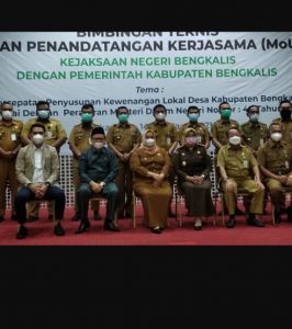 Bupati bengkalis Kasmarni resmi membuka binbingan teknis (bintek) guna untuk percepatan penataan kewenangan desa sekaligus penandatanganan (mou) bersama kejaksaan negeri bengkalis tgl 14 -16 maret 2021 .