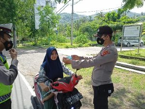 Dengan Humanis, Sat Binmas Polres Lotara, Sosialisasi 5M, Bagikan Masker Kepada Warga.