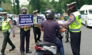 LOMBOK UTARA – NTB jurnalpolisi.id 27-3-2021 Jurnalpolisi.id Sat Lantas Polres Lombok Utara gelorakan Kampung Sehat 2 ajak warga tertib Protokol Kesehatan (Prokes) di jalan pada giat rutin pagi di Kabupaten Lombok Utara Jum’at (26/3/2021), upaya tersebut guna menekan penyebaran klaster Covid -19. Himbauan Prokes Satuan Lalu Lintas Lombok Utara yang dipimpin KBO Sat Lantas IPDA Bambang Tedi S ,SH pada giat rutin (Gatur) rawan pagi ini mulainya sekitar pukul 06.00 wita dibeberapa titik di KLU, diantaranya Simpang empat Pemenang , Simpang tiga Sire, Pasar Tanjung, Simpang tiga Rm ibunda, Lapangan Tioq tata tunaq tanjung, Simpang tiga kantor dishub dan Simpang Empat Lendang bagian. “Himbauan ini kami lakukan secara humanis, kepada masyarakat yang melintas di jalan raya untuk tertib menggunakan prokes saat beraktifitas di luar rumah,” Jelas Ipda Bambang. Kepala Kepolisian Resor Lombok Utara Polda NTB AKBP Feri Jaya Satriansyah, SH melalui Kasat Lantas IPTU I Made Sugiarta, SH mengatakan, kegiatan pengaturan lalu lintas pada pagi hari, rutin di lakukan anggota Lalu Lintas Polres Lombok Utara, ini merupakan bentuk pelayanan Kepolisian kepada masyarakat sesuai tugas pokok Polri sebagai pelindung, pengayom, dan pelayan masyarakat. ” Pengaturan lalu lintas bertujuan agar terciptanya Kamseltibcar Lantas dan mengantisipasi terjadinya Laka Lantas di jalan raya. Kegiatan ini di lakukan dengan harapkan dapat memberikan rasa nyaman kepada masyarakat pengguna jalan di Kabupaten Lombok Utara,”bebernya Lebih Lanjut Kasat Lantas menyampaikan Selain melaksanakan pengaturan rawan pagi anggota Sat Lantas Polres Lombok Utara turut memberikan himbauan kepada masyarakat agar tetap mematuhi protokol Kesehatan melalui penerapan 5 M yaitu selalu menggunakan masker kesehatan saat beraktifitas di luar rumah, secara rutin mencuci tangan dengan hand sanitizer, menjaga jarak, menjauhi kerumunan dan mengurangi mobilitas yang kurang penting. “Melalui Program Kampung Sehat yang diinisiasi Kapolda NTB, kami berharap dapat merangkul seluruh element masyarakat KLU untuk bersama sama melakukan upaya pencegahan penyebaran Covid 19 melalui budaya tertib hidup sehat selain tertib berlalu lintas,” pungkasnya. (Jpn NTB)