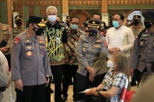 Didampingi Gubernur Jawa Tengah Ganjar Pranowo, Kapolri dengan semangat berdialog dengan peserta vaksinasi.
