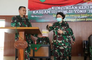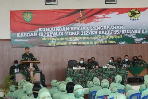 Kedatangan Kasdam III/Slw, selain mengecek prajurit tinggal dan keluarga Yonif 312/KH yang saat ini sedang melaksanakan tugas operasi di daerah perbatasan RI-PNG dan sekaligus memberikan arahan.