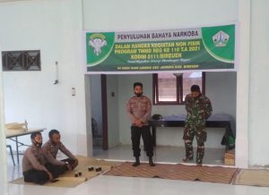 Kegiatan Non Fisik dalam rangka TMMD Reguler Ke 110 Tahun 2021 salah satunya adalah memberikan penyuluhan kepada warga desa akan bahayanya penyalahgunaan narkoba.