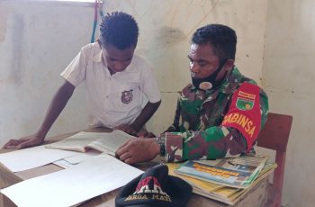 Kepedulian kembali ditunjukkan oleh personil Satgas TMMD ke 110 Kodim Boven Digoel Sertu Bosco kepada generasi muda disekitar lokasi TMMD lebih tepatnya di Distrik Kawagit, Kabupaten Boven Digoel, Jumat(19/3).