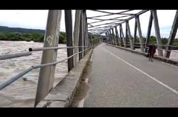 Malaka – Jurnalpolisi.id Curah hujan yang terjadi sejak hari Jumat (2/4/2021), mengakibatkan jembatan Benenai yang terletak di Desa Haitimuk, Kecamatan Weliman, Kabupaten Malaka, Propinsi Nusa Tenggara Timur (NTT), berubah bentuk menjadi miring akibat akibat dihantam banjir. Jembatan yang panjangnya lebih dari 300 meter itu, merupakan jembatan terpanjang di Pulau Timor. Pantauan wartawan JurnalPolisiNews, bahwa tiang penyangga jembatan Benenai miring serta tanggul yang dibuat oleh Pemerintah juga jebol. “Meluapnya air sungai Benenai dan curah hujan disertai angin kencang sehingga mengakibatkan jebolnya tanggul yang membatasi perkampungan dan bibir sungai Benenai,” jelas warga sekitar bantaran sungai yang tak mau namanya disebut. “Banjirpun menerjang masuk pemukiman warga dikampung, desa dan dusun-dusun,” tambahnya. Sementara warga yang lain mengatakan, ada beberapa ekor buaya di sungai Benenai tampak berkeliaran dijalan raya yang terendam banjir. Mungkin buaya-buaya itu merasa terusik karena habitatnya di sungai Benenai di terjang banjir, sehingga mereka keluar,” kata warga tersebut. (Roy Saba)