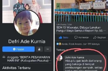 Tulung Agung – Jurnalispolisi.id Akun ini Kembali melecehkan dan penghinaan terhadap profesi wartawan, LSM Dan Ormas terjadi di kolom komentar yang tidak senonoh itupun di lontarkan pemilik akun di grup FB berita Pesawaran hari ini di Pusaka kabupaten tulung agung jawa timur Dari unggahan yang di posting salah satu akun milik Ucok Edison Aritonang pemilik akun FB Dalam Celoteh yang di ucapkan oleh akun ( DEFRI ADE KURNIAWAN ) “Hidup lu gak lebih dari orang yang bekerja di tempat pembuangan sampah, setiap hari cuma bisa ngorek ngorek saja” Ucapnya dalam komen Dijejaring Medsos FB. Dari bahasa yang dilontarkan sangat jelas sekali sang pemilik acount tersebut sangat merendahkan profesi orang lain karena ketidak sukaan kepada Jurnalis, LSM dan Ormas. Dengan peristiwa tersebut para Jurnalis akan melaporkan pemilik acount tersebut ke pihak yang berwajib, karena sudah melecehkan tugas Media, Ormas dan Lembaga. Hingga berita ini diturunkan sang pemilik acount belum bisa ditemui untuk dikonfirmasi. (Aspio jpn.)