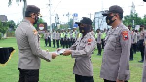 Klaten, jurnalpolisi.id Polres Klaten menggelar upacara kenaikan pangkat bagi PNS sekaligus pemberian penghargaan kepada anggotanya yang berprestasi, Rabu (07/04/2021)pagi. Mengingat saat ini masih dalam kondisi wabah covid-19, pelaksanaan upacara dilaksanakan dengan menerapkan protokol kesehatan yaitu memakai masker dan menjaga jarak. Dalam kegiatan tersebut terdapat 6 personel PNS Polres Klaten yang naik pangkat terdiri dari 1 personel naik dari Penata Tk I ke Pembina, 1 personel naik dari Penata ke Penata Tk I, 1 personel naik dari Pengatur Tk I ke Penata Muda, 1 personel naik dari Pengatur ke Pengatur Tk I dan 2 personel Pengatur Muda Tk I naik ke Pengatur. Sedangkan untuk personel penerima penghargaan berjumlah 13 orang dari staf Polres Klaten. Kapolres Klaten AKBP Edy Suranta Sitepu SIK MH selaku inspektur upacara mengatakan, kenaikan pangkat di lingkungan Polri memiliki arti penting, baik bagi kesatuan, personel, dan keluarga yang bersangkutan. Kenaikan pangkat merupakan bentuk penghargaan yang diberikan Pemerintah kepada personel Polri yang telah melaksanakan tugas dengan baik dan benar. Meskipun kenaikan pangkat rutin dilakukan namun tidak bisa dilihat sebagai hak anggota semata. “Perlu anggota sekalian ketahui, kenaikan pangkat tidak datang tiba-tiba tapi butuh perjuangan. Makanya syukuri itu dengan cara bekerja yang baik.” ungkapnya. Pada kesempatan itu, Kapolres Klaten juga memberikan pesan kepada para personel PNS yang naik pangkat agar momentum bahagia ini menjadikan dorongan semangat untuk mencapai prestasi dan juga inovasi baru dalam pelaksanaan tugas ke depannya. Terkait pemberian penghargaan, Kapolres mengatakan bahwa kegiatan upacara dilaksanakan sebagai bentuk apresiasi kepada personel Polres Klaten yang telah berdedikasi dalam mengemban tugas serta menunjukkan kinerja yang baik dalam bidang staf dan administrasi. Selain itu upacara dimaksudkan untuk memacu personel personel Polres Klaten lainnya agar meningkatkan kinerjanya. “Orang-orang yang menerima penghargaan ini memang layak. Yang memang kita tahu kinerjanya bagus, ada hasilnya.” ucap Kapolres. Kapolres kemudian berpesan agar para penerima penghargaan tetap mempertahankan prestasi dan kinerjanya. Apalagi kedepan, tugas Polri akan semakin berat dengan adanya situasi wabah covid-19 yang tentu akan membawa dampak kamtibmas. Kapolres juga menekankan agar pelayanan Polres Klaten kepada masyarakat semakin ditingkatkan sesuai semangat Zona Integritas. Inovasi-inovasi diharapkan juga terus muncul agar semakin memudahkan masyarakat dalam mengakses layanan kepolisian. “Untuk meraih predikat WBK kita tidak hanya serius tapi sangat-sangat serius. Sampaikan kepada anggotanya bagaimana kita harus memberikan pelayanan prima kepada masyarakat. Berikan layanan, ruangan dan sikap yang baik kepada masyarakat.” tutupnya.(Tumirin)