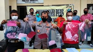 Medan Sunggal – jurnalpolisi.id 3/4/2021Team khusus anti bandit (Tekab) Polsek Sunggal dipimpin oleh Kanit Reskrim AKP Budiman Simanjuntak SE MH dan didampingi Panit Ipda Bambang Wahid pada Minggu (28/03) berhasil ungkap dan tangkap pelaku pembunuh korban seorang wanita Jamilah (46), yang terjadi pada hari Sabtu (27/03) di Jl. Pembangunan Desa Muliorejo Kec Sunggal DS. Keberhasilan pengungkapan kasus tersebut disampaikan oleh Kapolsek Sunggal Kompol Yasir Ahmadi SH SIK MH didampingi Kanit Reskrim AKP Budiman Simanjuntak SE MH pada saat pelaksanaan rilis di mako Polsek Sunggal Polrestabes Medan pada Sabtu (03/04) di mako Polsek Sunggal Polrestabes Medan. Dipaparkannya bahwa usai melakukan olah TKP, diketahui bahwa beberapa harta korban telah diambil oleh pelaku pembunuh korban. Saat itu, diupayakan untuk menghubungi suami korban melalui telepon selulernya namun tidak tersambung sedangkan keberadaannya tidak diketahui. Usai berkoordinasi dengan satuan atas, selanjutnya team yang dipimpin Kanit dan Panit atas perintah Kapolsek Sunggal malam itu juga langsung bergerak menuju Aceh karena diduga kuat, berdasarkan bukti-bukti awal yang cukup, pelaku berinisial MS (42) yang merupakan suami siri korban sudah melarikan diri ke Aceh. Berdasarkan informasi yang valid, akhirnya diketahui MS sedang berada di rumah orang tua angkatnya di Jln Pantai Ujung Blang kec. Banda Sakti kota Lhokseumawe Prov. NAD untuk bersembunyi menghindari kejaran petugas. Namun upaya MS menghindari kejaran petugas gagal karena pada hari Minggu (28/03) sekira pukul 08.00 wib, saat MS sedang tertidur, tempat persembunyiannya digerebek petugas dan langsung mengamankannya. Saat diinterogasi, MS tidak dapat berkelit lagi sehingga MS berikut barang bukti yang berhasil disita petugas berupa 1 (satu) unit SP. Motor Yamaha Vario BK 6864 AGF berikut BPKB dan STNK, 1 (satu) unit HP Merk Reldmi warna Biru, 1 (satu) Unit HP Merk Nokia Orange, KTP korban, uang tunai sebesar Rp 6.000.000,- (enam juta Rupiah) serta 1 ( satu) buah Dompet wanita Warna hijau diboyong ke komando. “Namun niat terduga pelaku untuk melarikan diri guna menghindari jeratan hukum, masih sangat besar yang mana saat dalam perjalanan menuju Mako Polsek Sunggal, MS berupaya melukai dan merebut senjata petugas, sehingga terpaksa kita lakukan tindakan tegas dan terukur dengan menembak kedua kakinya”, tambah Kapolsek. “Untuk motif, berdasarkan keterangan tersangka adalah karena korban dan tersangka bertengkar dikamar tidur hingga korban minta diceraikan oleh tersangka, hingga akhirnya tersangka mencekik leher korban, setelah dipastikan bahwa korban tidak bernyawa lagi, tersangka mengangkat tubuh korban dan memasukkan ke bak air sehingga menimbulkan kesan bahwa korban terpeleset dikamar mandi tersebut”, imbuhnya lagi. “Untuk mendalami perkaranya guna kepentingan proses penyidikan, tersangka kita tahan di RTP Polsek Sunggal dan kita persangkakan melanggar pasal 338 subs 365 ayat (3) KUHP tentang pembunuhan dan atau pencurian dengan kekerasan dengan ancaman hukuman 15 tahun penjara”, tutup Kapolsek mengakhiri. ( RIZKY ZULIANDA / Aspio jpn)